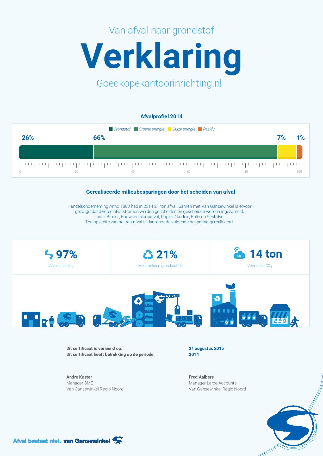 Hoe leuk is het om te ondernemen en tegelijk een positieve bijdrage te leveren aan een circulaire economie. Dit is eigenlijk de basis waar verder geen technologische veranderingen voor nodig zijn. Natuurlijk wordt het eens tijd dat mensen zich bewust gaan worden dat de aardse stoffen niet oneindig zijn is recycling een must. Dit zijn we ook verplicht voor de generaties na ons. Vele mensen zijn het zich wel bewust echter doen er te weinig mee. Terwijl het kopen van gebruikt kantoormeubilair echt een eenvoudig middel is waarop je als ondernemer ook nog trots kan zijn, geld besparen en tegelijk een positieve bijdrage leveren aan de omgeving. Als je naar de voorgaande decennia kijkt is het natuurlijk niet echt verantwoord, zoals we met onze leefomgeving zijn omgegaan en in feite nog steeds grotendeels doen. Dit is voor ons de motivatie om ons hiervoor in te zetten en te zorgen dat 99% van het gebruikte meubilair wat bij ons binnen komt weer een tweede leven krijgt. Hiervoor hebben we een aantal eenvoudige middelen tot onze beschikking. Zo worden er bijvoorbeeld van 3 beschadigde stoelen weer 2 goede gemaakt, her-stofferen wij kwaliteitsmeubelen en eventueel het reinigen van stoelen enzovoorts. Na deze processen is 89% weer geschikt om verkocht te worden in Nederland en voldoet het in bijna alle gevallen weer aan de eisen welke onze klanten hieraan mogen stellen. Voor de volgende 10%, vaak ook gedateerd, hebben we meerdere bestemmingen, we schenken dit namelijk aan goede doelen. Erg belangrijk vinden we zelf maar bovendien ook nog eens heel erg leuk om hier een steentje aan bij te kunnen dragen. Uiteindelijk blijft er dan nog 1% over wat door ons gescheiden wordt afgevoerd. Hierdoor wordt de milieubelasting tot een minimum gereduceerd. En zelfs ons afval wordt door van Gansewinkel weer maximaal benut zodat uiteindelijk er maar 0.01% van ons totale afval als restafval overblijft. Zoals u zal begrijpen is dit een geheel andere wijze van recyclen dan een aantal jaren geleden toen alles als afval werd afgevoerd en alles op 1 grote vuilstort werd gedumpt. Op deze wijze wordt het hergebruik van grondstoffen gemaximaliseerd en de CO2-uitstoot tot een minimum gereduceerd. In onderstaande afbeeldingen kunt u zien wat er bij goedkopekantoorinrichting.nl uiteindelijk nog als afval wordt afgevoerd en wat er daarvan uiteindelijk weer herwonnen wordt als grondstof. Ook ons nieuwe meubilair wordt hieraan getoetst en ook ons nieuwe meubilair voldoet aan onze eisen op dit gebied. Ook deze producten zijn voor 99% recyclebaar zonder ingrijpende technologische aanpassingen maar het belangrijkste is nog wel de kwaliteit. Op het moment dat een product twintig of dertig jaar meegaat is dat natuurlijk al een enorme winst voor onze omgeving, in ieder geval een veel lagere belasting. Het grootste voordeel wat wij hebben ten opzichte van onze concurrenten is dat wij echt veel gerenommeerde merken als Gispen, Ahrend, Mewaf, Assenburg, Lensvelt en vele andere topmerken, door de handen krijgen. We hebben dus een goed beeld waar kwalitatief meubilair aan moet voldoen en die eisen stellen we ook aan ons meubilair wat we onder onze eigen lijn verkopen (Ergonomic Line en de Prime Line).